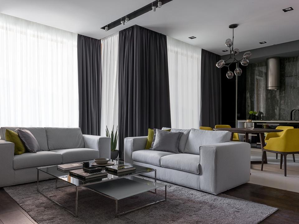 Дизайном, отделкой и меблировкой этой квартиры площадью 90 м² занималась мастерская Бориса Уборевича-Боровского ub.design. Через большие панорамные окна вся квартира заливается естественным светом, а для темного времени суток продуманы разные сценарии освещения, которые помогут создать правильный настрой как для званого ужина, так и для тихого вечера с книгой. Цена по запросу.