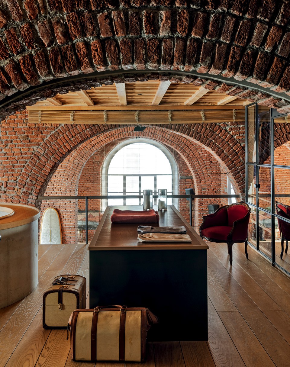 С фактурой ему очень повезло: это бывшее складское помещение с высоченными потолками, окнами и арочными проемами. Томмазо поместил хозяйскую спальню с гардеробной и ванной комнатой на антресоли, под ней расположил кухню и кабинет, а большую часть пространства внизу оставил свободным. Во входной зоне Фантони сделал ступени амфитеатром, под ними оборудованы дополнительные места для хранения. Теперь в общей зоне возможны два варианта развития событий: ступени могут быть сценой, в то время как зрители комфортно устраиваются на диванах и в креслах, или, наоборот, они используются как посадочные