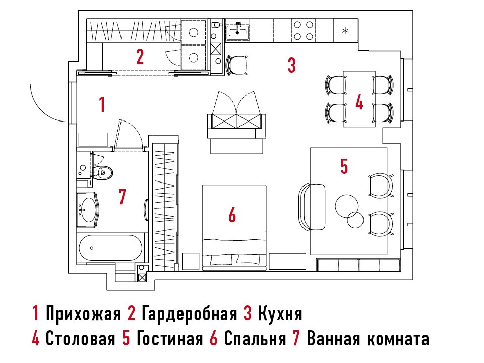Чтобы не загромождать маленькое пространство, Олеся отказалась от дивана в гостиной в пользу отреставрированного советского диванчика и пары винтажных кресел. Зато в столовой поместился большой раскладной стол, который используется как рабочий.