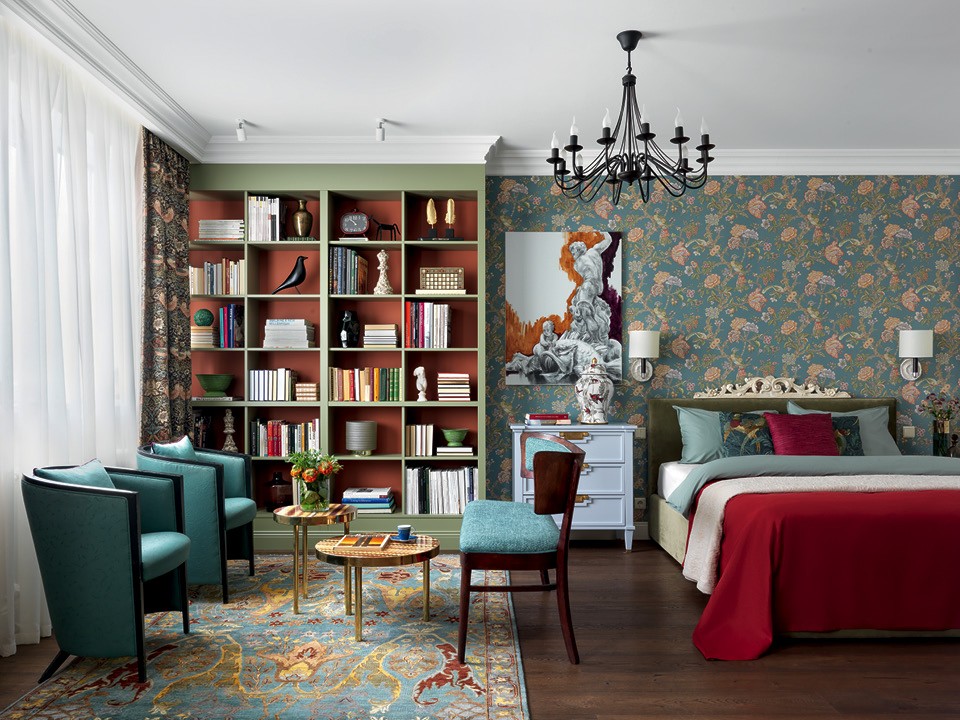 Оформляя собственную квартиру, архитектор Олеся Шляхтина поставила перед собой задачу — обойтись минимальными средствами, но в процессе все же решила добавить дорогих материалов. Так здесь появились обои и текстиль по дизайну Уильяма Морриса. “Мне всегда хотелось сделать интерьер под себя, чтобы никто не ограничивал и не влиял на мой выбор, — говорит она. — Я часто использую изображения цветов и птиц на стенах, шторах и подушках, они делают интерьер более уютным”.