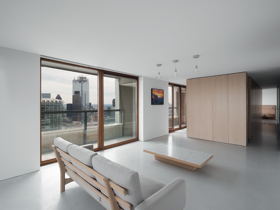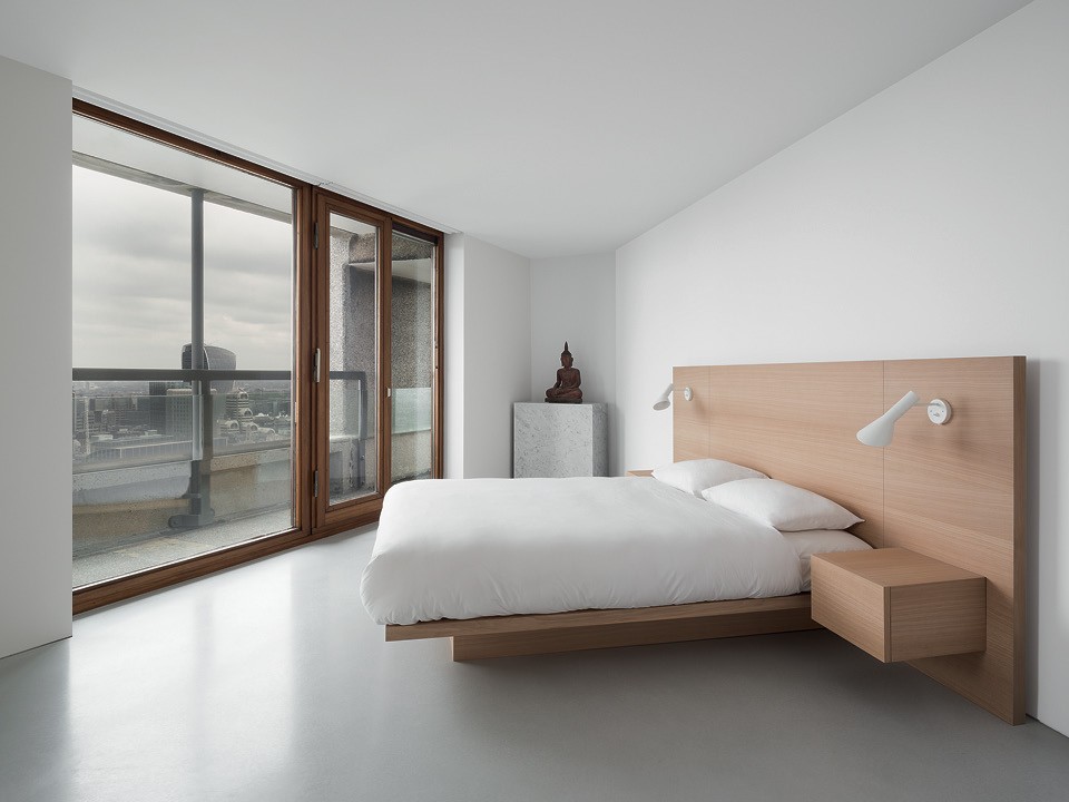 Эту квартиру живой классик минимализма спроектировал в Барбикане — и в сравнении с ней даже этот суровый гигант брутализма выглядит почти нарядно и избыточно. В центре квартиры архитектор выстроил деревянный объем, который зонирует пространство и вмещает в себя кабинет и шкафы. Остальную мебель можно пересчитать по пальцам. Из цветов — только белый и оттенок выбеленного клена. Идеальная обстановка, чтобы следить за игрой света и ловить ускользающие мгновения.