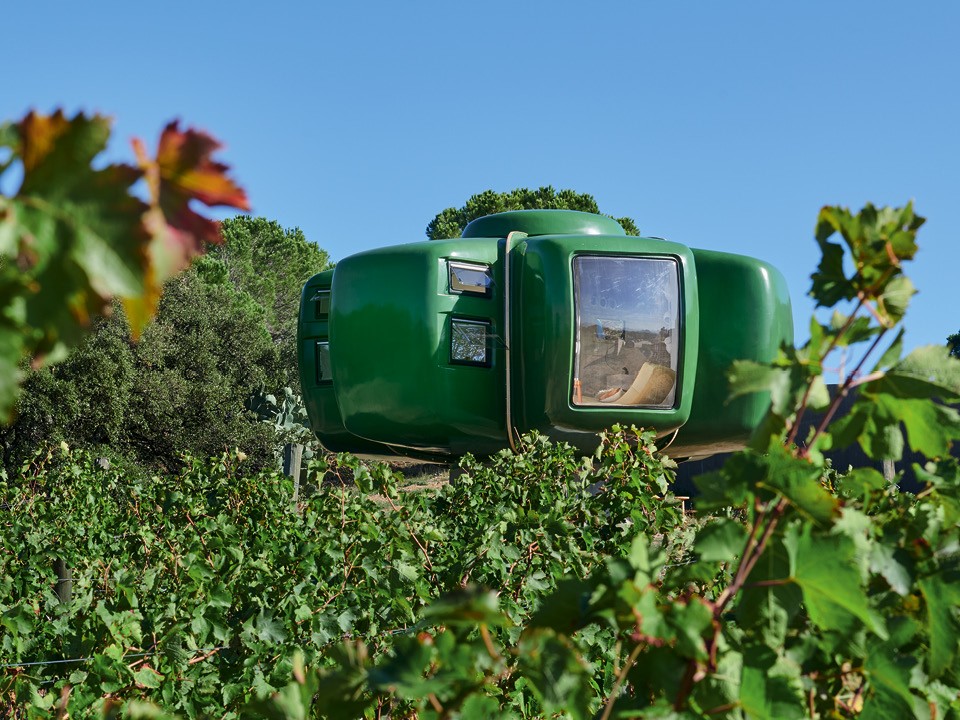 Выставленный на продажу футуристический дом по дизайну Жан-Бенжамена Маневаля Серж Кастелла решил посмотреть просто из любопытства. Он и не подозревал, что влюбится в него и купит, не имея ни малейшего представления о том, где его установить. Серж уже однажды видел это культовое сооружение на площади Согласия в Париже во время выставки PAD, поэтому, встретившись с ним во второй раз, довольно быстро решился провернуть сделку. А идеальное место для нового дома нашлось у его друзей на виноградной плантации — небольшая конструкция гармонично вписалась в ландшафт и слилась с фоном.