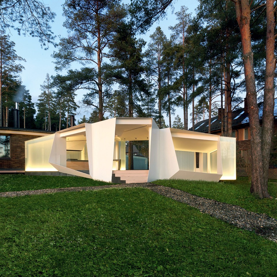 Важной константой, повлиявшей на проект, были вековые сосны, их, естественно, требовалось сохранить. В итоге расположение деревьев во многом определило сложные очертания строения.