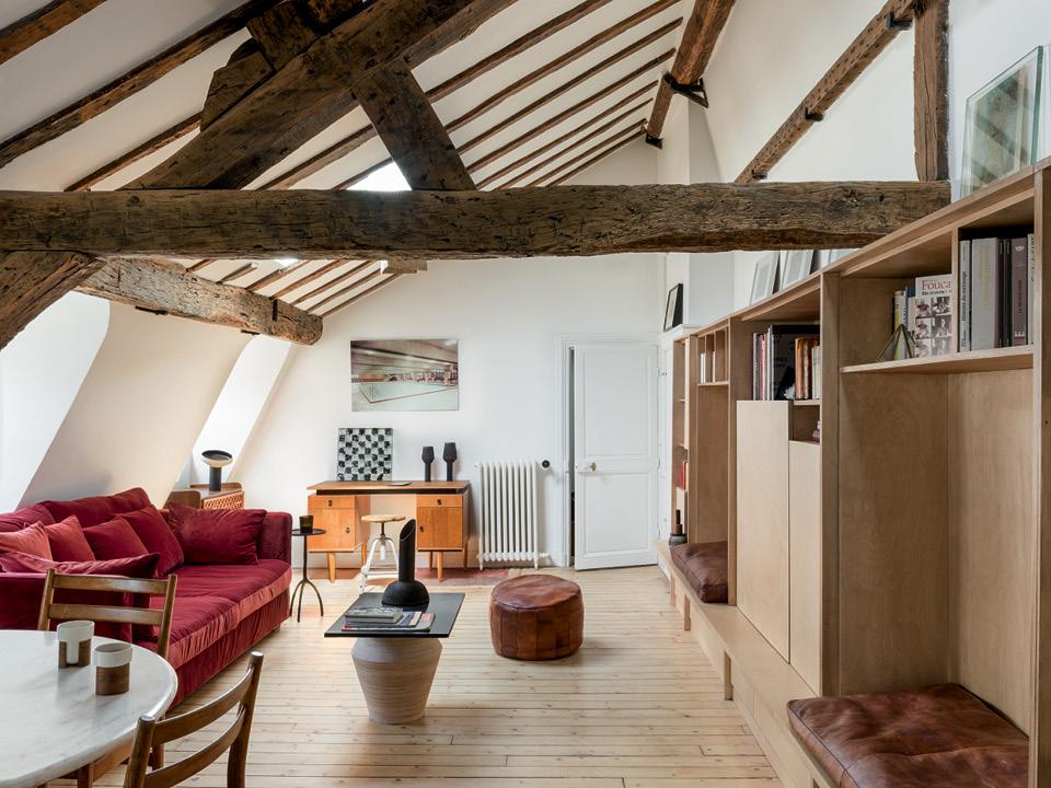 Дом 1681 года постройки на Сен-Жермен-де-Пре во времена Людовика XVI принадлежал министру юстиции, а сейчас здесь в мансарде обосновалась кинематографист Зое Ле Бер, внучка великого французского драматурга Жана Ануя. “Обычно в своих проектах я отталкиваюсь от того, что предлагает пространство, потому что считаю, что историю надо уважать”, — говорит Софи Дрие, декоратор, которая взялась за оформление интерьера. В этом случае ей досталось длинное помещение, нарезанное на мелкие комнатушки с низким потолком. Первым делом Софи снесла все стены, оголила старые балки, избавилась от ковролина и линолеума, открыв взору терракотовую плитку и паркет. Несовершенства этих старых материалов только добавили квартире шарма.