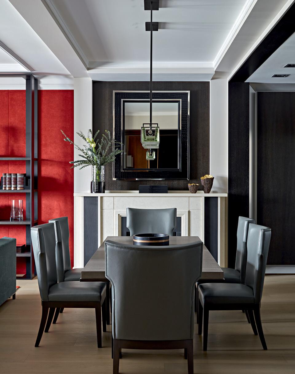 До переделки пространство действительно было оформлено в классическом стиле с обилием позолоты и художественным паркетом. Сначала дизайнер планировала обойтись минимальными вмешательствами, но новая лаконичная мебель не сочеталась с пышной отделкой, поэтому постепенно квартира полностью преобразилась. Только в спальне, которая была выдержана в ар-деко, остались элементы этого стиля: карнизы на потолке, люстра и богатая фактурная отделка. А в гостиной сохранился лишь каминный портал, которому придали мужественности, отделав по бокам темным камнем. “У меня не было ни эскизов будущего интерьера, ни 3D‑проекций. Мы просто общались и постепенно меняли и переделывали то одну зону,
