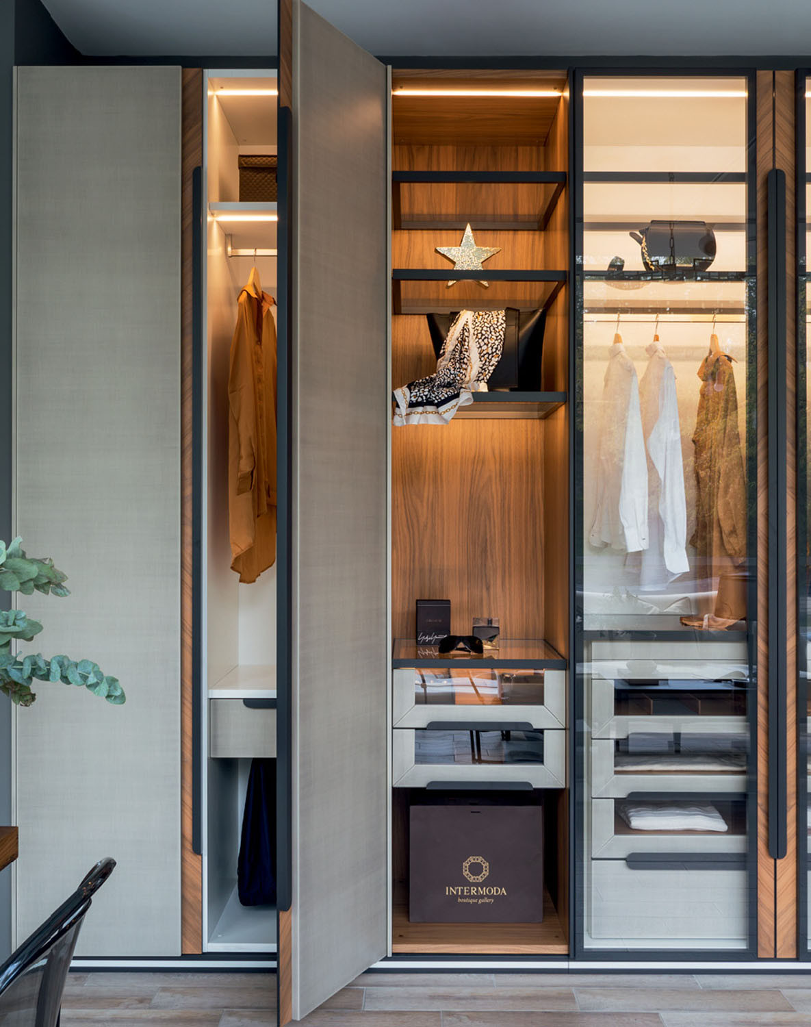 “При проектировании пространства нужно выяснить у заказчика, есть ли в семье шопоголики, — рассказывает Николай Колосков, основатель бюро Tolko Interiors. — Это не шутка, а базовое знание, которое напрямую влияет на количество вещей и, соответственно, на размер гардероба”. Не менее важны антропометрические показатели будущего пользователя гардеробной, например, человеку невысокого роста будет попросту неудобно дотягиваться до верхней штанги.