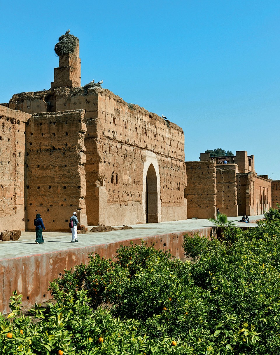 Старая часть города — Медина — настоящая сокровищница. Здесь примечательное буквально на каждом углу. Вот, например, дворец Эль-Бади XVI — начала XVII века, символ триумфа над португальской армией и яркий пример превратностей исторической судьбы. Когда-то он был отделан золотом, бирюзой и ценными породами дерева (за такое великолепие и получил название El Badi — “несравненный“). В конце XVII века султан из династии Алауитов решил перенести столицу в город Мекнес и построить себе там дворец получше, а этот снести. Сейчас здесь руины, но зато со смотровой площадки башни отличный вид на Cтарый город.