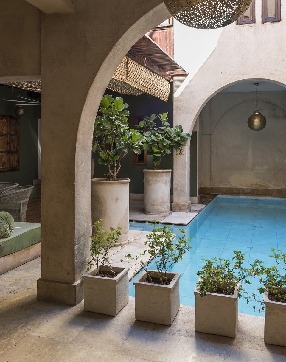 Бутик-отель El Fenn занимает помещения бывшего дворца — риада. Его открыла Ванесса Брэнсон, сестра Ричарда Брэнсона (создателя Virgin), в далеком 2002 году. Изначально она приобрела часть здания, но со временем отель разросся на весь риад. Сейчас в нем две дюжины комнат, три бассейна, спа и просторная терраса на крыше, где можно выпить чай с мятой, глядя на заснеженные пики Атласских гор. El Fenn расположен чуть в стороне от Медины, поэтому тут тихо и уединенно, но все равно главные достопримечательности в пешей доступности. Интерьеры — мечта блогера: яркие, с традиционной марокканской плиткой на полу и с произведениями современного искусства на стенах. Из окон открываются живописные виды на внутренний дворик с фонтаном и растениями в кадках.