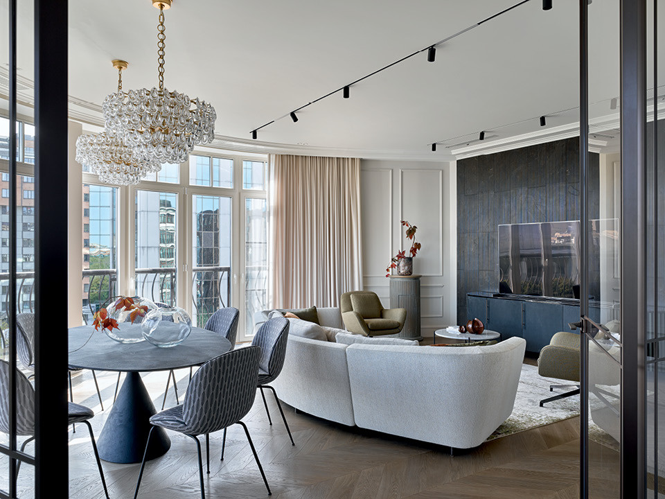 Описать интерьер на словах бывает непросто, особенно если он пока существует не в реальности, а только в мечтах. Поэтому интуиция так же важна для дизайнера, как чувство цвета или знание законов композиции. Хозяева этой московской квартиры в новостройке в районе “Фрунзенской” с самого начала хотели традиционный, в классическом духе интерьер. И больше того — уверены, что получили желаемое. Хотя кто-то наверняка скажет, что это абсолютно современное пространство. “Я сразу сказала, что совсем классический интерьер — это не ко мне”, — рассказывает дизайнер Ариана Ахмад.