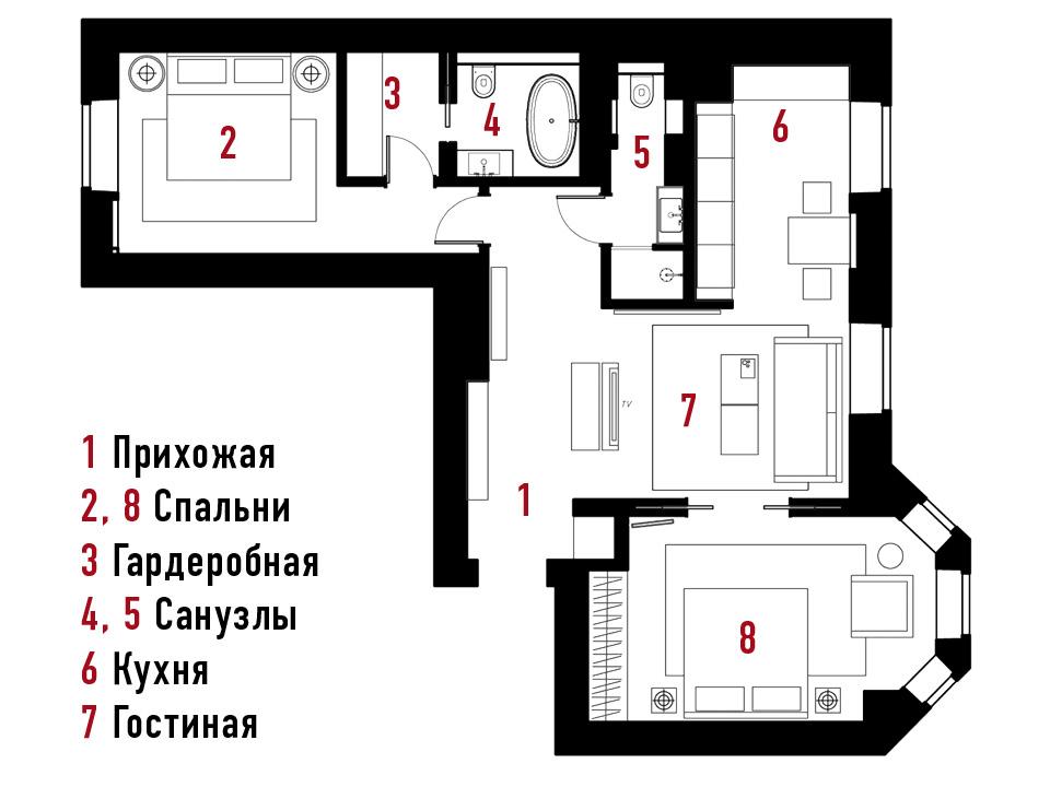 Архитектор Слава Спицын и Антон Долотин знают друг друга давно: первый часто проектирует гостиницы, второй производит для них мебель. Квартиру на 1‑й Тверской-Ямской улице Антон купил в конце 1990‑х годов у клана Бондарчуков и сразу сделал в ней ремонт в духе времени — с колоннами и прочими украшательствами. Правда, никогда там не жил, поскольку тогда же завел себе загородный дом. А квартиру использовал, по его собственному выражению, в качестве транзитной — иногда ночевал в ней сам, чаще размещал партнеров по бизнесу и друзей, приехавших в Москву. Когда назрела необходимость перемен, Антон пригласил заняться интерьером Спицына, который использовал в проекте свои гостиничные наработки.