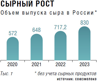 Увеличение объемов сырного производства отмечается в России с 2014 года, когда были введены ограничения на ввоз импортного продовольствия. По данным Национального союза производителей молока (Союзмолоко), если в 2020-м было выпущено около 572 тыс. т сыра, то в 2023-м — уже 830 тыс. т, и ежегодные темпы роста за этот период были двузначные. Объем инвестиций в данное направление за последние 10 лет превысил 70 млрд руб. Согласно оценке аналитиков Россельхозбанка, к 2030 году производство сыров в стране может превысить 1 млн т.