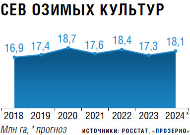 Осенний сев под урожай-2024 в целом проходил благополучно в отличие от сева под урожай-2023, когда из-за дождливой осени Центр не досеял порядка 900 тыс. га, а около 10 % площадей погибло зимой в результате температурных колебаний, напоминает Павенский. «Итогом стали рекордные посевы яровой пшеницы, которые в прошлом году возросли на 600 тыс. га и достигли 1,8 млн га в ЦФО, — добавляет он. — Таким образом, по объективным причинам площадь под яровой пшеницей в 2024-м в центральных регионах вернется к прежним значениям и в целом по стране будет меньше, чем год назад, когда она достигла 14,1 млн га (в 2022-м — 13,1 млн га).