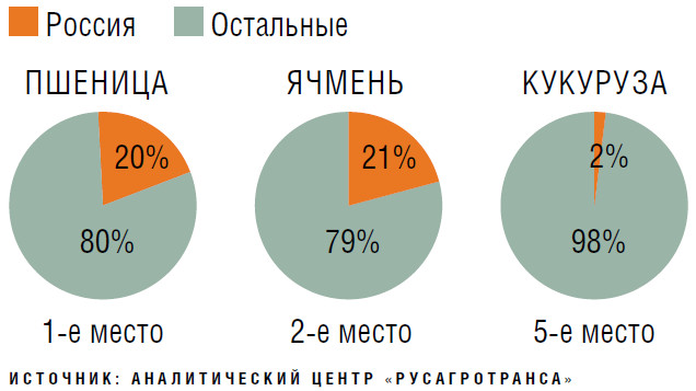 Практически со старта сезона-2020/21 российские экспортеры отправляли за рубеж рекордные или почти рекордные месячные объемы зерна вплоть до февраля 2021-го. В большинстве месяцев поставки даже превышали вывоз 2017/18 сельхозгода, когда в России был собран самый высокий урожай зерна, а экспорт достиг исторически рекордной планки в 56 млн т. Осенью 2020 года из нашей страны на внешние рынки вывозилось более 5 млн т в месяц, а в сентябре объем отгрузок достиг уровня в 5,84 млн т (ранее самый значительный объем был зафиксирован в ноябре 2017-го — 5,52 млн т). В отличие от сезона-2017/18, основой этого вывоза являлись только две агрокультуры: пшеница и ячмень (98% от общего объема), тогда как ранее в этот ряд попадала и кукуруза.