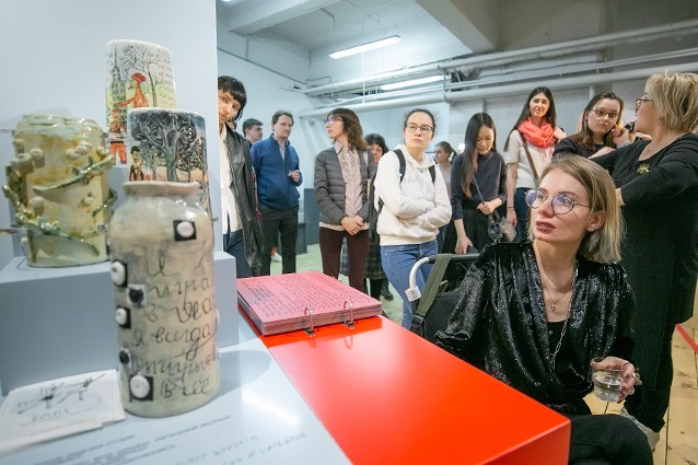 Еще на выставке есть истории, которые практически дублируют часть моей жизни. Например, история Марии Генделевой, которая получила травму в юности, стала пользоваться инвалидной коляской, а потом училась в необустроенном техникуме без намека на доступную среду. Или история Александры Кожевниковой, которая пользуется коляской с 13 лет. Она окончила Литинститут, училась на заочке, и ее тетя каждую сессию брала два месяца отпуска, чтобы возить ее на экзамены. Таскала на второй этаж в необустроенный вуз, где даже нет туалета на каждом этаже. Эти истории очень сильно отозвались во мне, потому что мои последние годы в университете, когда я училась в аспирантуре, — это был просто сплошной ад. Мы сверстницы и с Марией, и с Александрой, и мы все учились в тот период, когда всем было, грубо говоря, насрать.