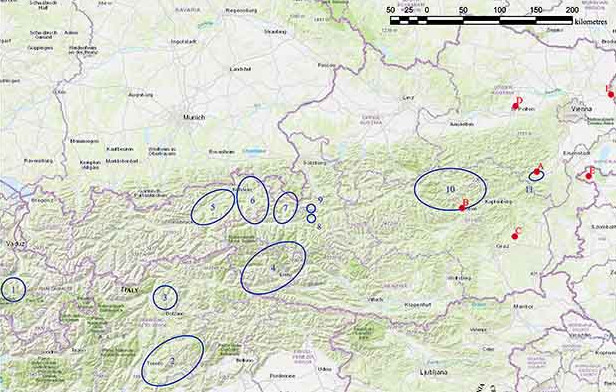 Первые свидетельства добычи меди в Альпах датируются эпохой позднего неолита. С металлообработкой были знакомы носители археологических культур конца IV тысячелетия до нашей эры — Пфин на северо-востоке современной Швейцарии и Мондзее в Верхней Австрии. В восточных предгорьях Альп добыча медной руды распространилась значительно позднее: археологические находки, содержащие признаки древней горнодобывающей деятельности, относятся к эпохе поздней бронзы.