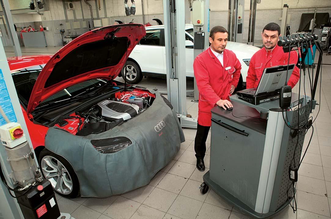 Единые стандарты качества введены и для технических специалистов, а также для оборудования и инструментов, применяемых в процессе ремонта. Мастера регулярно проходят обучение по корпоративным стандартам Audi и вовремя знакомятся с новыми разработками компании, участвуют в программах и тренингах Audi в Германии. Также в их распоряжении более десятка онлайн-ресурсов завода-изготовителя, где накоплена актуальная техническая информация. А рекомендованные заводом инструменты и методики позволяют работать с автомобилем наиболее бережно и правильно. Невозможно представить дилерские центры и без приятных мелочей вроде точки доступа Wi-Fi, возможности выпить чашку чая или кофе и отдохнуть в ожидании своего автомобиля на удобном диване.