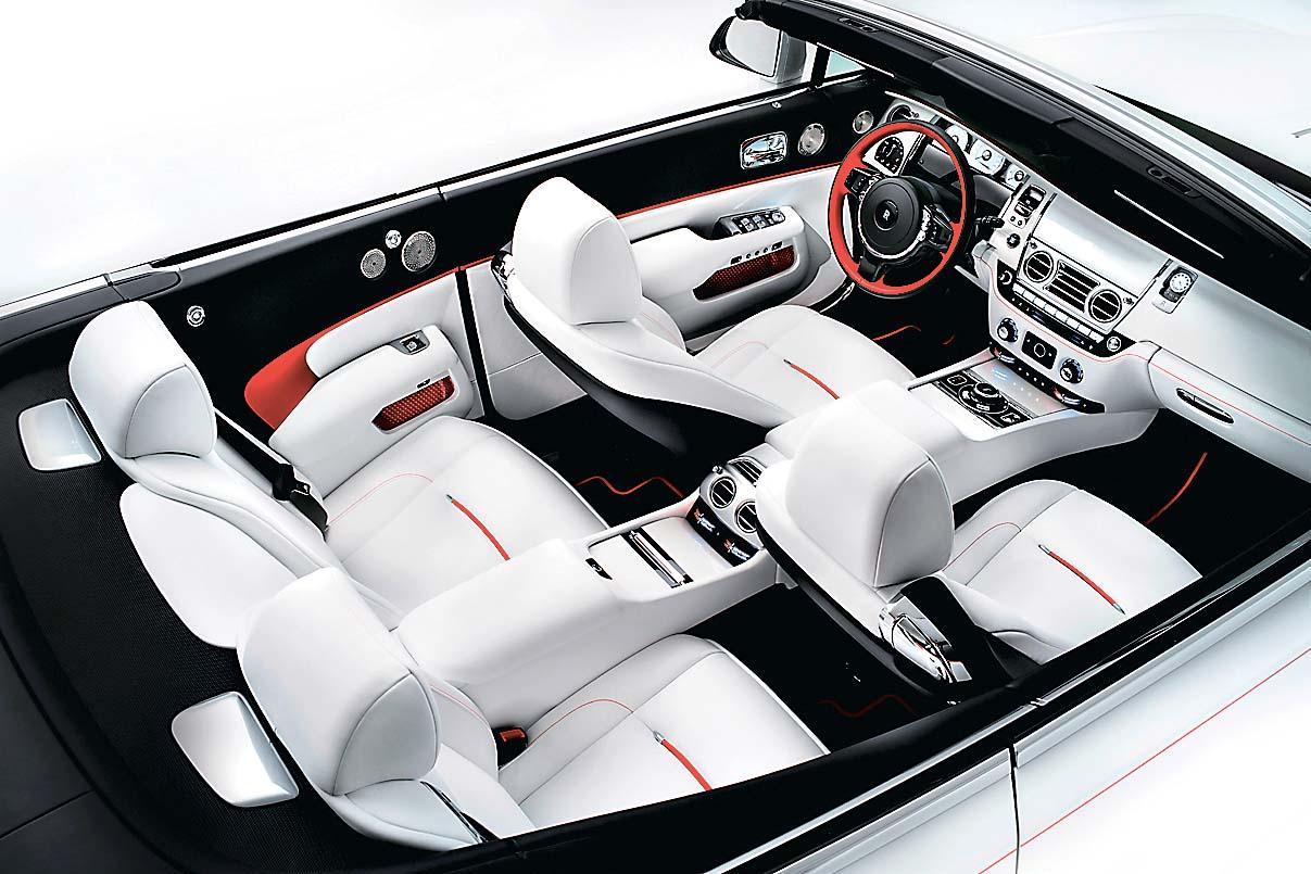 В экстерьере выбранный цвет поддерживает нанесенная вручную декоративная линия, контрастирующая с белым кузовом. На спинках белоснежных кресел – вышивка и декоративная отстрочка. При обшивке руля кожей применена техника потайного шва, позаимствованная из мира высокой моды. Приборная панель Dawn Inspired by Fashion изготовлена из ценных пород дерева. На лакировку этой детали у создателей ушло целых девять дней! И в этом весь Rolls-Royce – в педантичном стремлении к совершенству.