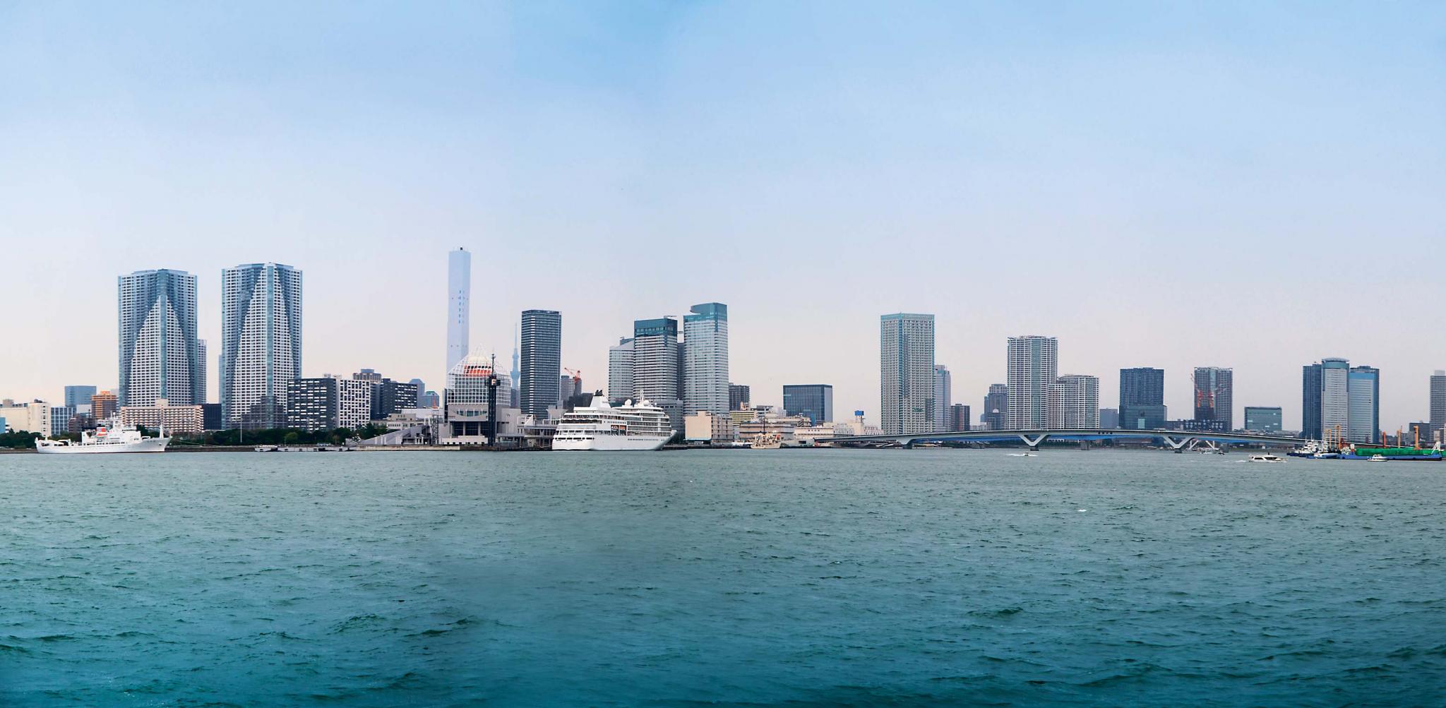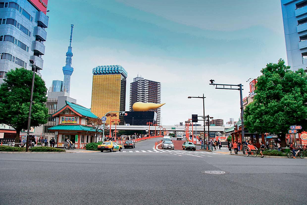 Отправимся дальше. Выйдя на станции Асакуса и пройдя немного пешком, мы попали в знаменитый торговый квартал Накамисе, раскинувшийся перед храмом Сэнсодзи. Кстати, именно тут самые дешевые сувениры в Токио. Наибольшей популярностью пользуются талисманы манеки неко («денежный котик» с поднятой лапой), кимоно-юкаты, традиционные зонтики и деревянные головы богов. Совершив обряд омовения в храме, идем к причалу, расположенному неподалеку. Небольшие прогулочные кораблики курсируют по всевозможным маршрутам, наш – по реке Сумида к порту Токио. По пути можно полюбоваться красотами города и многочисленными мостами. Сделав остановку у парка Хамарику и перед штаб-квартирой Toshiba, мы берем курс на искусственный остров Одайба. Первое, что открывается взгляду, – футуристическое здание корпорации Fuji TV, спроектированное известным японским архитектором Кэндзо Тангэ в 1997 году. В нем на высоте 125 м расположена смотровая площадка и музей.