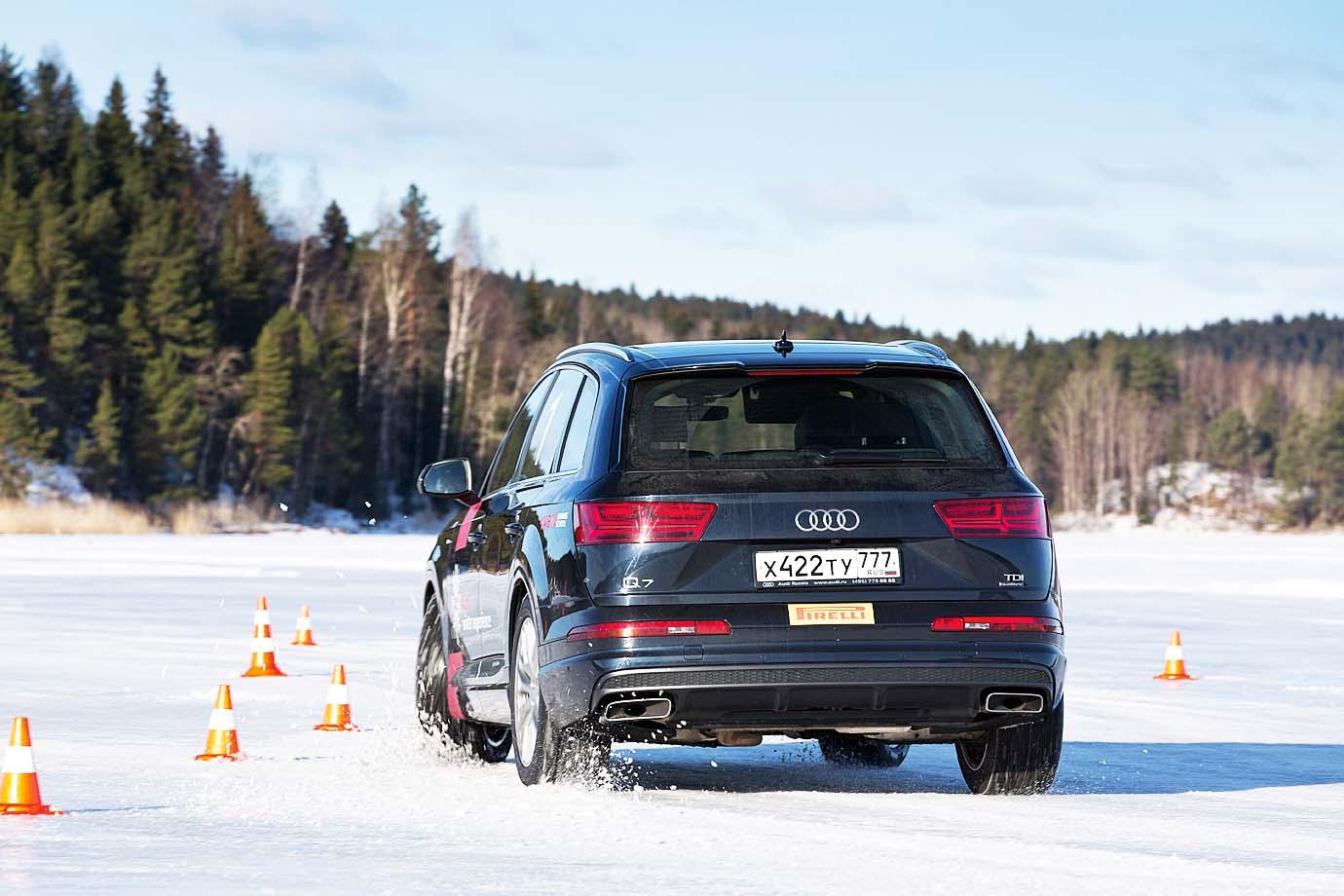 Зимние курсы экстремального вождения «Школа quattro» Audi проводит не первый год. Их география довольно широка – от Москвы до Ханты-Мансийска. В этом году немецкая компания осваивала Карелию на Audi Q7. Курс рассчитан на три дня и, поверьте, этого времени достаточно, чтобы научиться очень многому. Специально для зимней школы Audi на льду Ладожского озера «построили» огромную учебную трассу – ее длина свыше 20 км. За всеми действиями учеников пристально следят шесть инструкторов, работающих под руководством заслуженного мастера спорта Евгения Васина. От их глаз не скроется ни одна промашка – стоит хоть немного схалтурить и рация оживает: «Номер четыре, активнее работаем рулем» или «Раньше входим в поворот!» И тут никто не собирается вас жалеть, так что сетовать на усталость бессмысленно. Комментарии инструкторов порой бывают довольно резкими. Стоит случайно выехать за пределы расчищенной трассы, как слышишь вопрос, зачем это ты решил «распахать огород». А бывают и более жесткие замечания! Иногда становится обидно, чаще – смешно. Но эти едкие комментарии помогают сосредоточиться и взять себя в руки, даже когда ничего не получается.