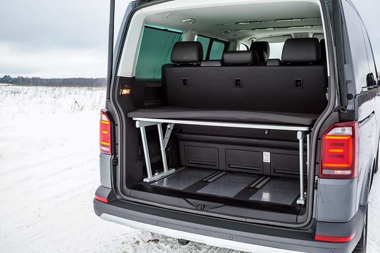 Для подобных мероприятий в модельном ряду Volkswagen есть California с полноценной спальней на «втором этаже». Но зато у нее нет возможности превратиться в комнату для переговоров, потому что в бок будет упираться холодильник и газовая плита.