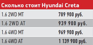 Ворвавшись на российский рынок в прошлом году, этот корейский кроссовер питерской сборки успел полюбиться нашим автомобилистам – да так, что уже даже возглавил рейтинги продаж в своем сегменте. Число владельцев Hyundai Creta меньше чем за год перевалило за 30 000 человек. Казалось бы, такой успех – да еще и продемонстрированный корейцами на падающем рынке – доказывает, что у Creta есть абсолютно все, что нужно. А когда это так, то добавить машине нечего. И тут – бац! – полный привод для базовой версии со 121-сильным мотором. И такие автомобили уже можно купить. Но нужно ли?