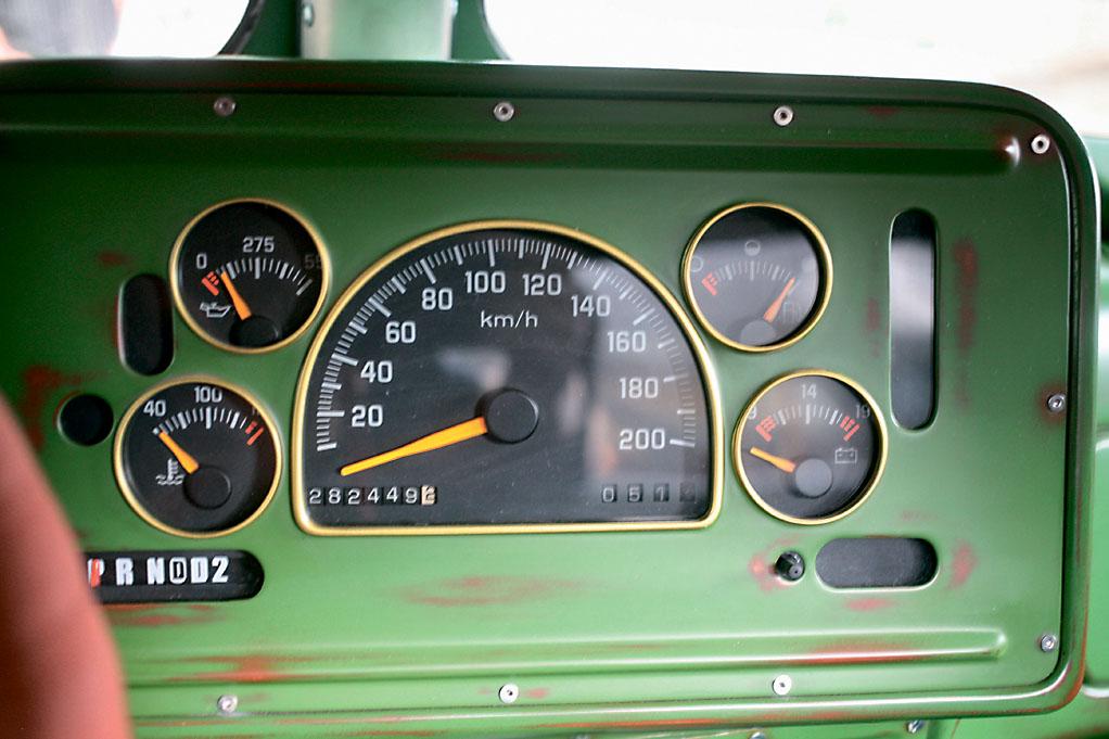 Здесь, кстати, снова пригодились отдельные приборы и элементы от донорского Chevrolet Suburban. Тот, кто ездил на чем-то подобном, наверняка узнает характерную «субурбановскую» «приборку». Интересно то, что в интерьере практически нет пластика – дефлекторы системы вентиляции не в счет. Все остальное сделано из такой же стали, как и внешние панели кузова. Брутальность цельнометаллического салона разбавляет лишь веселенькая обивка сидений, изготовленная из самого настоящего мексиканского пончо – кому-то пришлось пожертвовать сувениром, привезенным из турпоездки. За кабиной на раму установили чисто декоративный кузов из полированного красного дерева. Понятно, что он не предназначен для перевозки каких-либо утилитарных грузов. Единственное, что можно там разместить, – это мотоцикл. Для него даже специальное крепление предусмотрено. А как же иначе, если и заказчик, и создатель «Маззи» – оба большие любители и ценители мотоциклов?