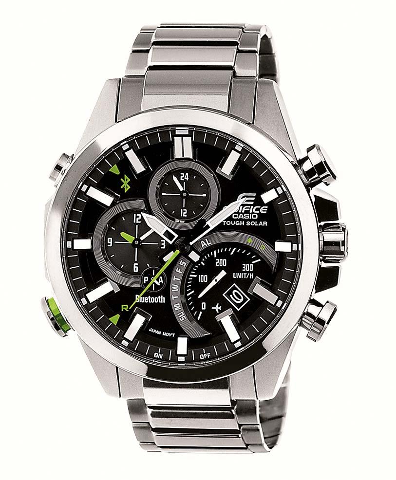 Еще в 2012 году компания Casio представила миру часы, обладающие технологией Bluetooth. С тех пор функционал системы существенно обновился. Новая модель EQB-500 из серии EDIFICE не только оповещает владельца о входящих звонках и новых письмах, но и позволяет управлять музыкальным плеером, а также выполняет функцию «личный тренер». Классические наручные часы, выполненные из нержавеющей стали, водонепроницаемы и обладают высокой стойкостью к механическим повреждениям. Часы подключаются к смартфону одним нажатием кнопки, автоматически подстраиваясь под время текущего географического месторасположения.