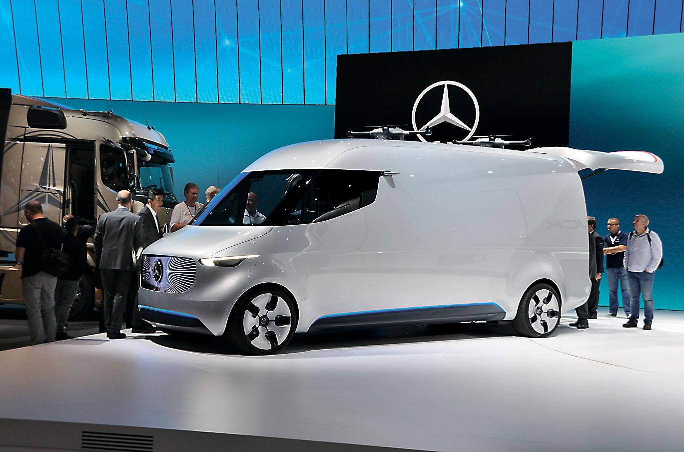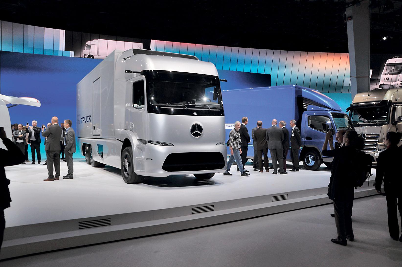Главными героями штутгартской компании стали машины ближайшего и не очень будущего. Верится с трудом, что концептуальный Vision Van с его полностью автоматизированным грузовым отсеком и двумя, способными поднимать двухкилограммовые предметы дронами скоро превратится в серийный продукт. В этом плане гораздо больше перспектив у среднетоннажного Urban eTruck. Этот грузовик с электродвигателями суммарной мощностью 250 кВт и запасом хода на одной зарядке в 200 км уже сейчас проходит ходовые испытания, и, по заявлениям представителей немецкой фирмы, должен встать на конвейер уже в 2018 году. Так что рассчитывать на титул грузовика года ему пока рановато.
