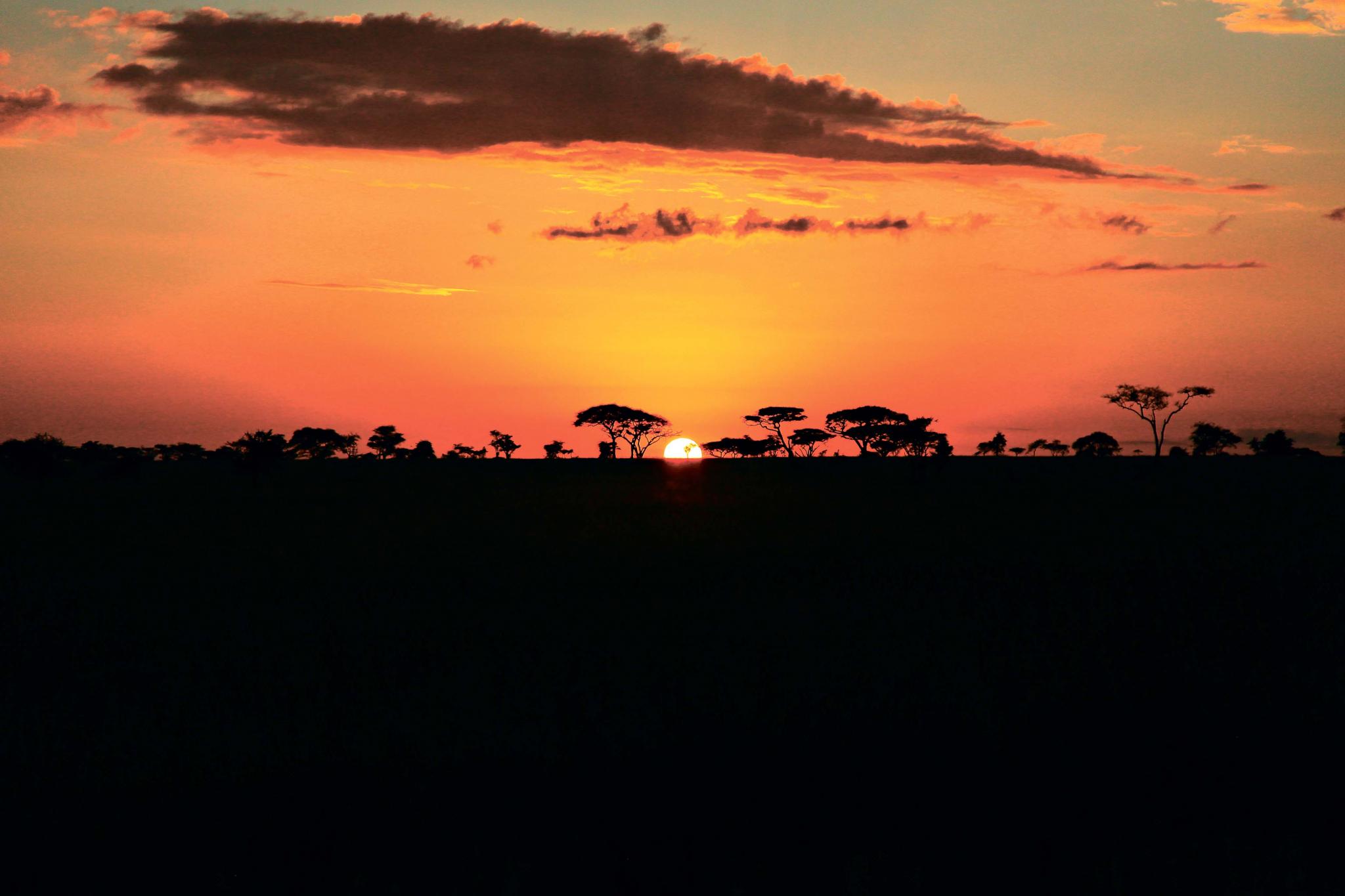 Проснувшись затемно, мы отправились встречать рассвет в саванне… Когда солнце неспешно поднялось из-за горизонта, нас уже ждал завтрак от «шефа»: свежеиспеченные блины, жареные в кляре бананы и кофе. Кстати, танзанийцы очень удивились, когда узнали, что блины – это русское национальное блюдо.