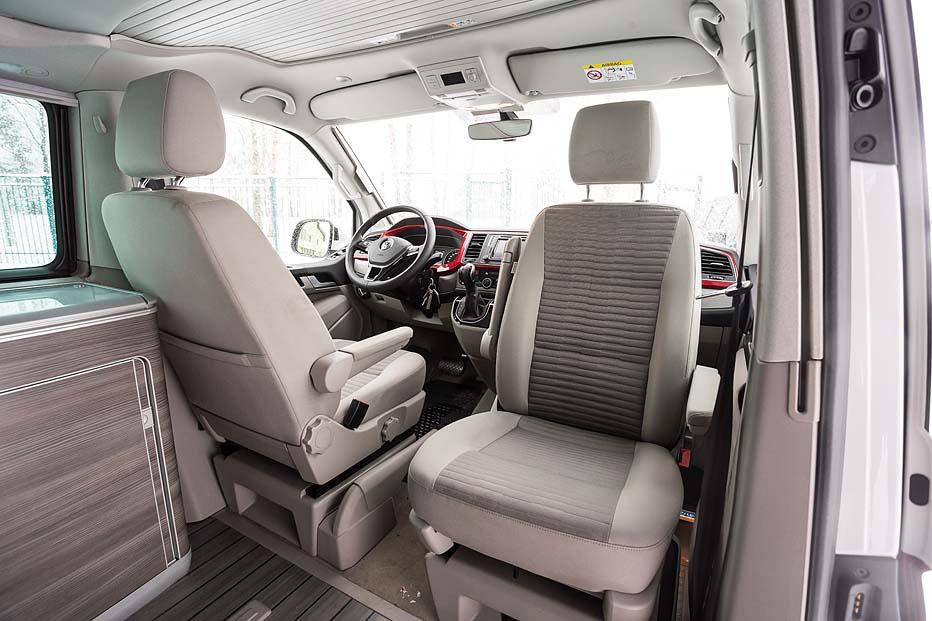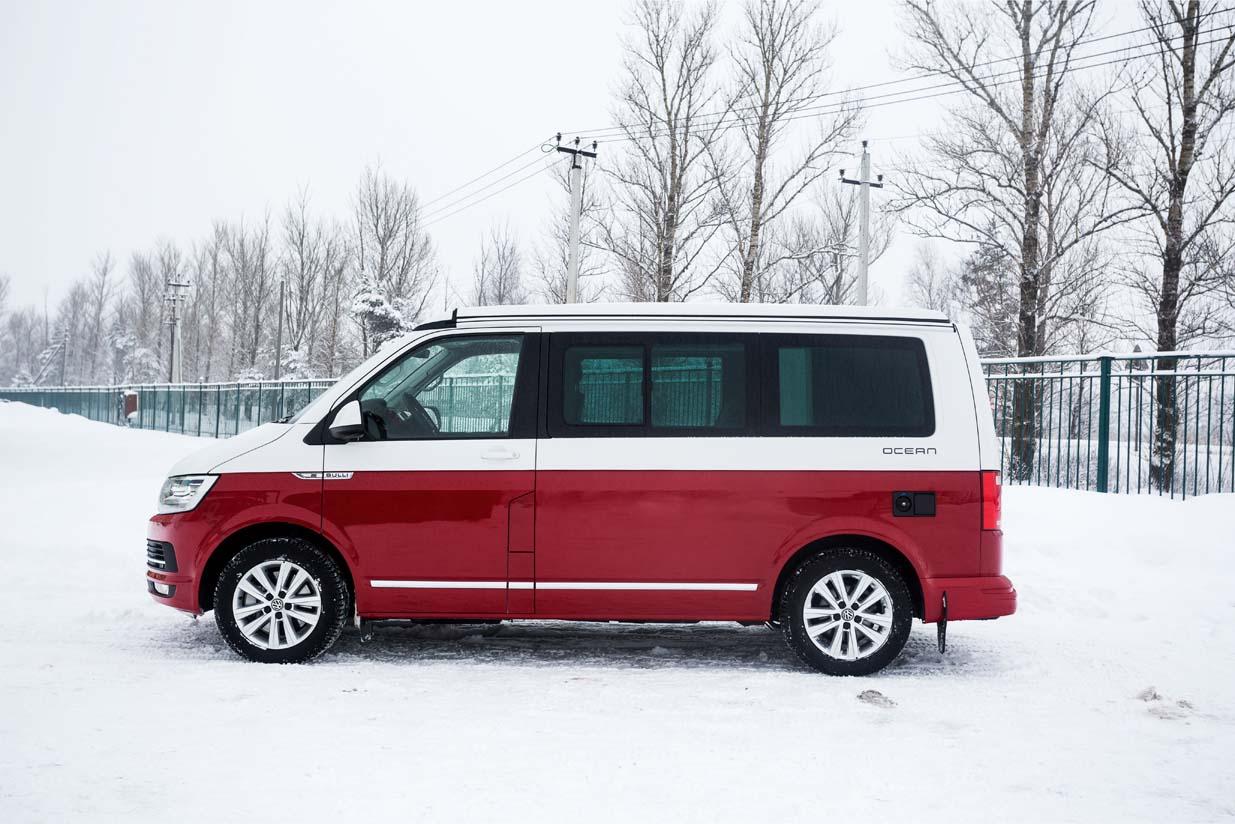 А доехать California может много куда. Полный привод здесь опционален, но для такой машины он необходим – вдруг жажда приключений заставит свернуть с асфальта и отправиться в манящую неизвестность? С легким бездорожьем «Калифорния» справляется играючи, засыпанные снегом московские дворы и загородные лесные дорожки для машины не преграда. Посадка за рулем больше «грузовая», что обусловлено родословной машины – несмотря на все «навороты» это по-прежнему Volkswagen Transporter. И едет California почти так же, подпрыгивая кормой на неровностях и неспешно разгоняясь. Тестовая машина – с самым мощным в линейке дизельным мотором с отдачей в 180 л.с., но при разгоне чувствуется, что мощности трехтонному вэну не хватает. Зато потребляет двигатель не больше 10 л дизтоплива на 100 км даже в городских условиях.