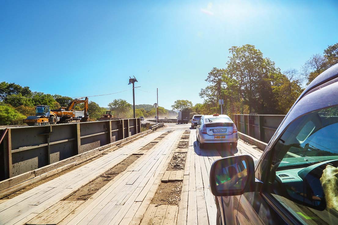 Чтобы добраться из Москвы до Находки, сначала надо прилететь (или приехать на машине или поезде) во Владивосток. Из Владивостока до Находки 180 км. До Артема трасса идеальная, дальше состояние покрытия хуже. Много заплаток, мало возможностей для обгона. Часть мостов находится в аварийном состоянии. Организованы их объезды, которые в непогоду периодически размывает. Например, в этом августе и вовсе был перекрыт участок трассы в районе Смоляниново. Причиной как раз стало поднятие уровня воды в реке, которая подтопила временную объездную переправу возле непригодного для движения аварийного моста. Так что прогноз погоды и состояние дорог обязательно уточните заранее. После Находки мы поехали дальше, в Триозерье – это еще около 50 километров пути. В Порт Восточный (бухта Врангеля) поворачиваете налево в сторону поселка Первостроителей, и... асфальтовая дорога заканчивается. Точнее, тут всегда и была грунтовка. Уже на подъезде к бухте Триозерье (последние километров 10 пути) нас ждал настоящий аттракцион. В пляжный сезон дорогу ровняют грейдерами, но в конце сентября, после дождей, она представляла собой застывшие потоки лавы свирепого вулкана. В общем, вам пригодится автомобиль повнушительнее. Наше путешествие проходило на Mitsubishi Pajero 4.