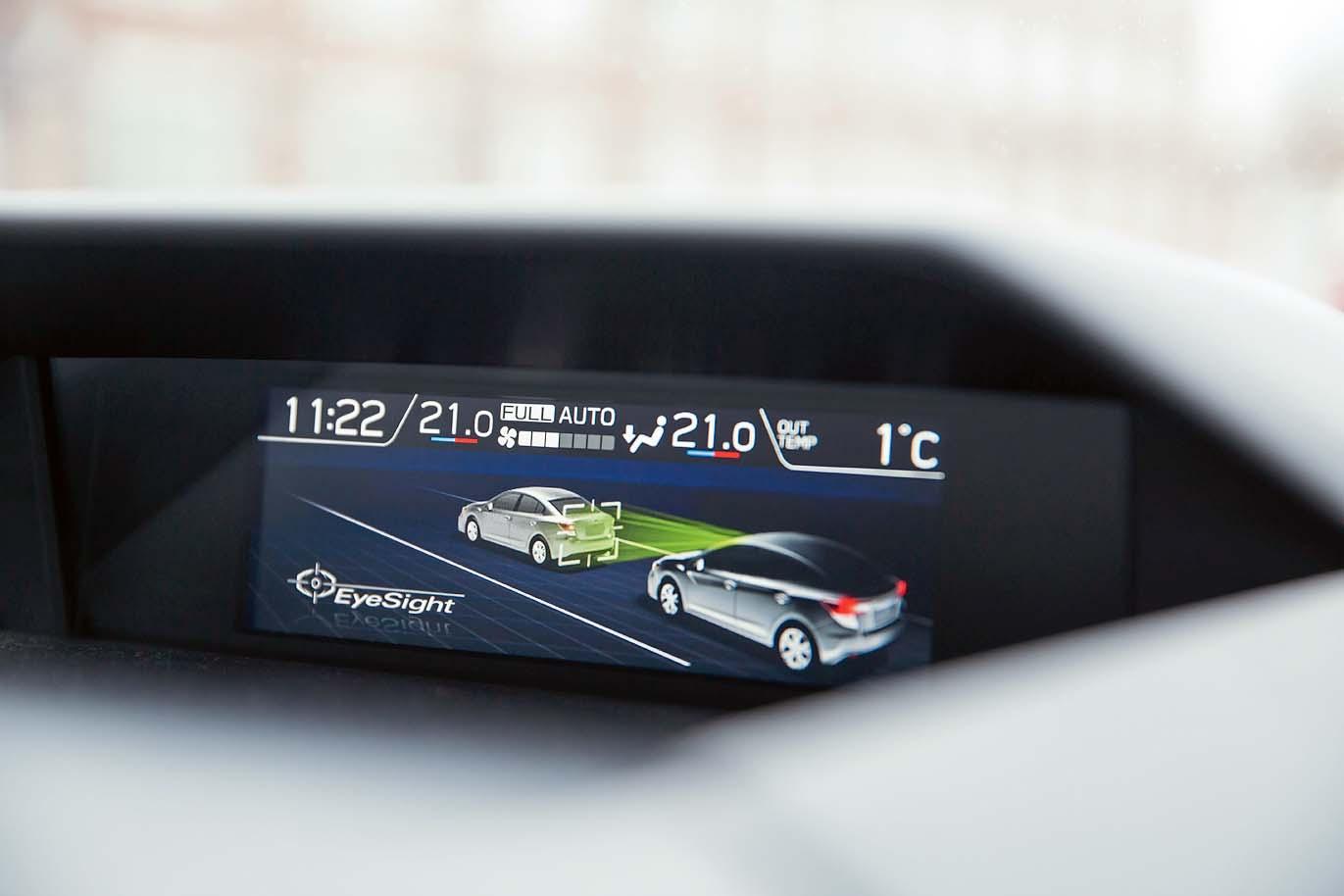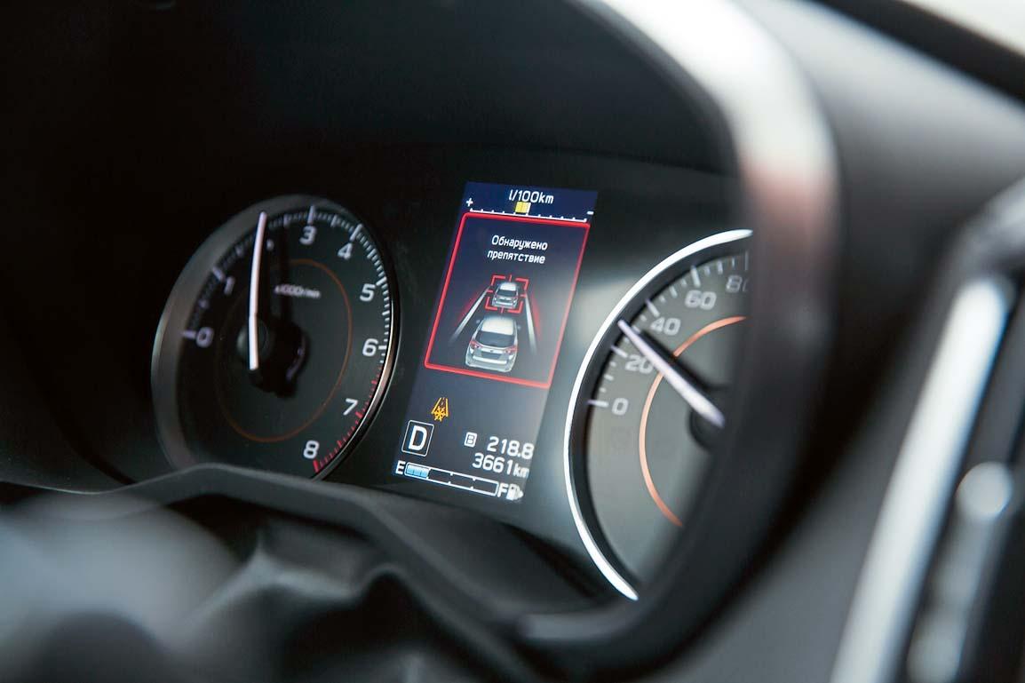 В 2013 году в Европе была представлена система EyeSight третьего поколения. И нынешней весной прибыла к нам вместе с кроссовером Subaru XV. Устройство и принцип ее действия не изменились – фиксация объектов происходит посредством двух установленных параллельно видеокамер. Накладывая одно изображение на другое, встроенный процессор вычисляет расстояние до препятствия и дает команду исполнительным механизмам. Теперь это не только звуковые и визуальные предупредительные сигналы. Определив опасное сближение с другим автомобилем, велосипедистом или пешеходом, система активирует тормоза и может полностью остановить машину на скорости до 50 км/ч. В ее силах «придушить» и тягу мотора, если в непосредственной близости со стенкой или чужим бампером водитель опрометчиво нажал на газ. Кроме того, выдерживая заданную дистанцию, EyeSight 3 обеспечивает комфортную работу активного круиз-контроля и чутко следит за разметкой, готовясь при произвольном пересечении ограничительных линий, самостоятельно вернуть машину в полосу. И это лишь несколько ключевых ее функций. Остальные, чтобы не перегружать монотонным перечислением всех достоинств системы, мы предпочли указать в подписях к иллюстрациям.