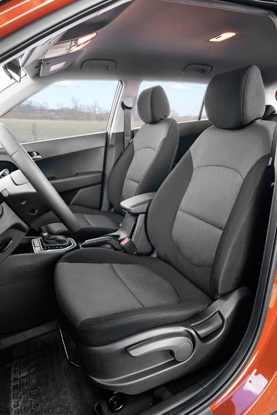 Возможностей 121-сильного 1,6-литрового мотора хватает на то, чтобы размеренно перемещаться в городском потоке и поддерживать крейсерскую скорость на трассе, а вот рискованными маневрами на такой Creta лучше не увлекаться – чрезмерной живостью силовая установка не отличается. При необходимости передвигаться динамично приходится поддерживать высокие обороты двигателя и активно работать рычагом 6-ступенчатой «механики». На случай преодоления влажного после обильных летних дождей дачного проселка предусмотрен полный привод с возможностью блокировки межосевой муфты. На пользу практичности идет и защитный пластик по низу кузова, и большой дорожный просвет – к городским бордюрным камням можно парковаться впритирку без опаски.