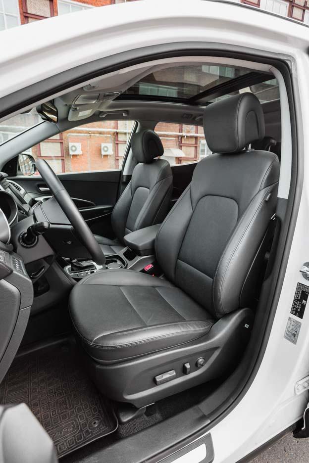 Именно столько стоит тестовый «паркетник» Hyundai Santa Fe с дизельным мотором и в максимальной комплектации. Есть, конечно, версии и подешевле. Так, базовая машина с бензиновым двигателем и минимумом опций обойдется в 1 856 000 рублей. Но только в топовой комплектации Santa Fe может аргументированно ответить на вопрос недоумевающего покупателя «за что такие деньги?» Корейцы расстарались и наполнили среднеразмерный кроссовер оборудованием, присущим автомобилям классом повыше. К примеру, оба передних кресла имеют не только электрические регулировки, но и функцию вентиляции. И это только малая толика приятных мелочей, из которых соткан Santa Fe. Интерьер – одна из самых приятных его сторон. Кожаная отделка, качественный пластик, панорамная крыша с огромным люком (доступна в дополнительном пакете опций стоимостью 75 000 рублей) – все располагает к приятному времяпрепровождению и неспешной езде. В случае с Santa Fe его характер отлично передается водителю и пассажирам.