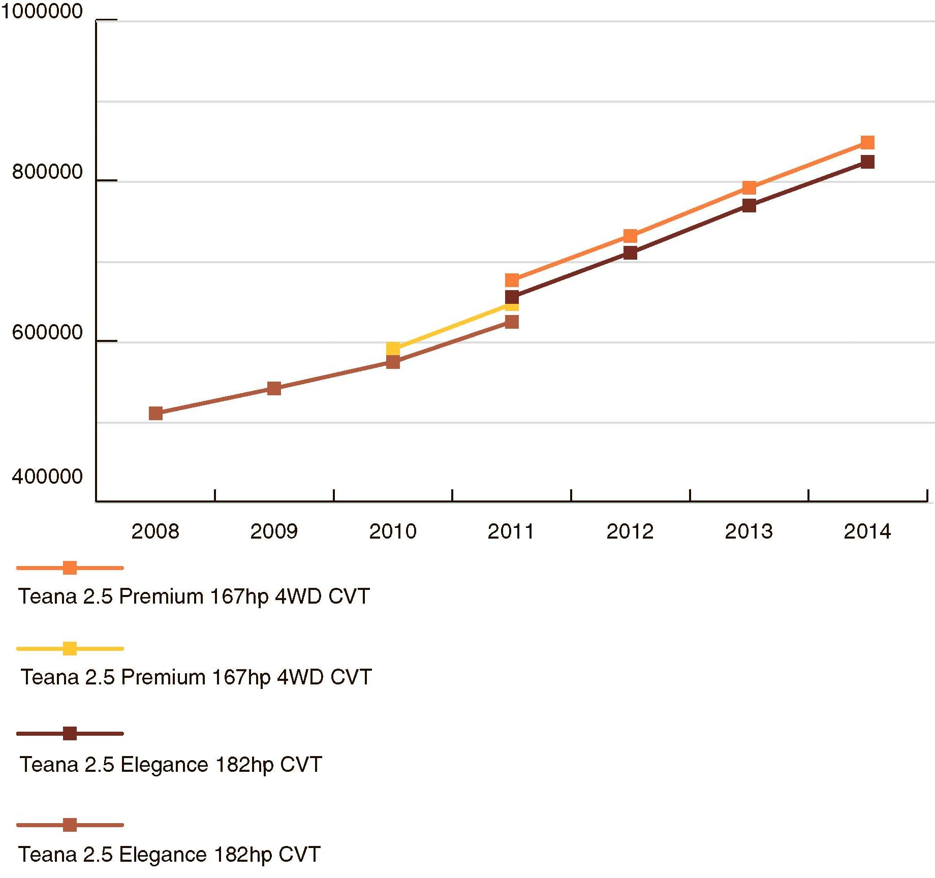 Стоимость Nissan Teana на вторичном рынке