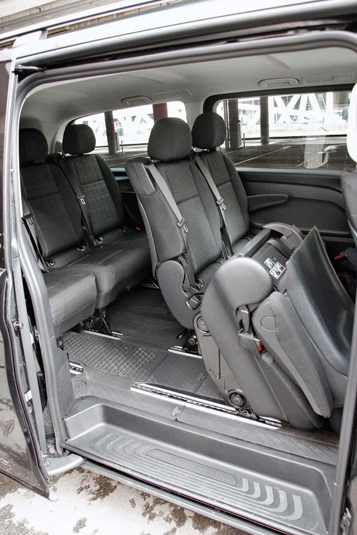 Угрызения совести за рулем такого автомобиля, как Mercedes Vito, ощущаются особенно отчетливо. Ну как же: он способен с комфортом перемещать в пространстве 8 человек в придачу с их чемоданами, а ты, вместо того чтобы немедленно инициировать дальнее путешествие большой компанией, уже третий день возишь воздух... И в самом деле стыдно. Скорее в дело: открыть нажатием кнопки оборудованные электроприводом боковые двери, сложить и сдвинуть крайние кресла, помогая пассажирам занять места в третьем ряду, разместить чемоданы в просторном благодаря увеличенному заднему свесу багажнике – и отправиться по указанному в заявке адресу.