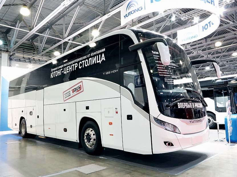 Среди китайских брендов автобусы Yutong самые популярные на нашем рынке. Кстати – вторые Higer, а замыкает первую тройку King Long. На стенде представили и междугородний туристический Yutong T 122 премиум-класса (на снимке). Силовой агрегат Mercedes-Benz – 428-сильный с восьмиступенчатой АКП. Пассажировместимость 49+1+1 человек. Флагманский «турист», как и положено, оборудован холодильником, USB-входами, спальным местом водителя и туалетом.