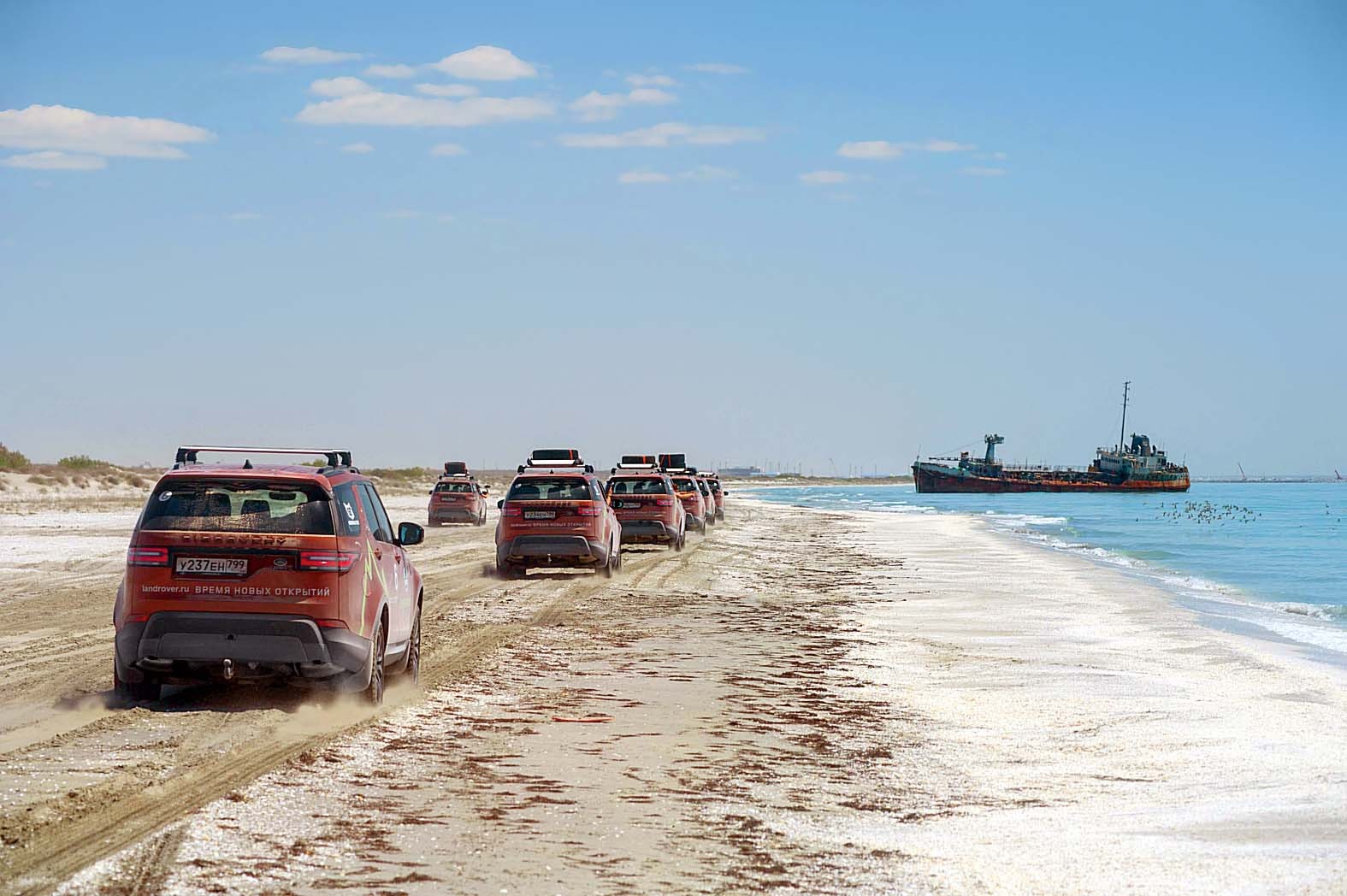 Перед тем как окончательно распрощаться с асфальтом и приступить к изучению дикой, но прекрасной природы Казахстана, решено было поближе познакомиться с Каспийским морем. Отличное место для этого – мыс Песчаный, расположенный недалеко от города Актау. Чтобы насладиться этим местом, даже необязательно заходить в воду – достаточно просто посмотреть вокруг и оценить уникальное сочетание песка и моря: от воды до песчаных барханов всего несколько десятков шагов. Пляж по-настоящему «дикий», даже местные жители сюда заезжают очень редко, а вода удивительно прозрачная и чистая. Для тех, кого купание не прельщает, есть другие развлечения – например, преодолевать барханы. Здесь это не менее увлекательно, чем где-нибудь в ОАЭ, главное подобрать подходящий автомобиль. Например, Land Rover Discovery.