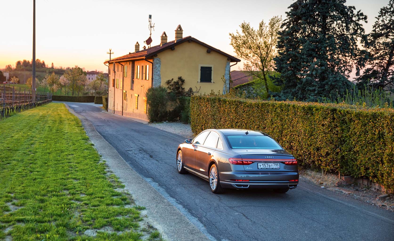 От миланского аэропорта до первой точки нашего путешествия, виллы Спарина, отправляемся на новом Audi A8. И эти первые 150 км пути – уже как детокс от будней, суеты и проблем. Кресла, обитые кожей тончайшей выделки, с функцией массажа убаюкивают. Чистота и выверенная простота линий в интерьере благодатно действует на глаза. Воздух, пропущенный сквозь систему очистки и ионизации, заставляет вновь дышать полной грудью. Но главное – это пейзажи за окном: изумрудные поля, самобытные деревеньки, виноградники.