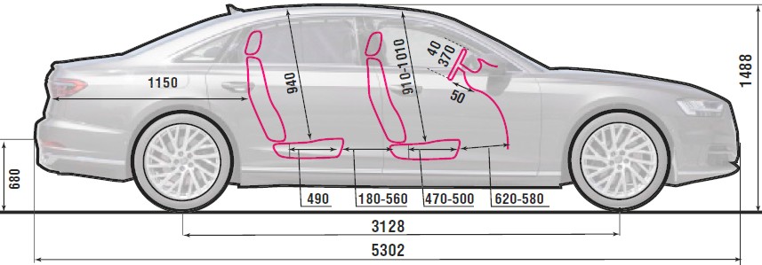Колесная база версии L на 130 мм длиннее, чем у стандартного A8