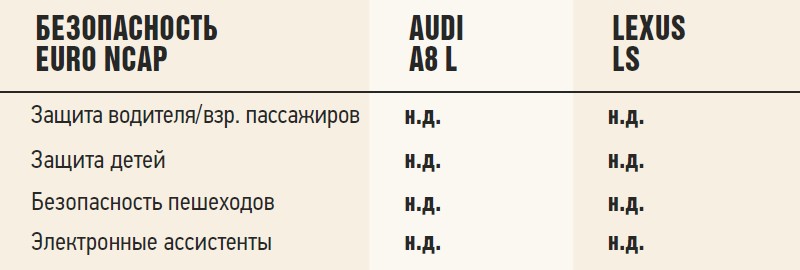 По пространству в заднем ряду Audi выигрывает – А8 просторнее, чем Lexus LS. Но не будем забывать, что у нас на тесте не стандартная, а удлиненная версия немецкого седана, с увеличенной на 130 мм колесной базой. Lexus же существует только в одном размере – и, несмотря на то, что габаритная длина его меньше на 67 мм, он лишь на 3 мм уступает в величине базы удлиненному Audi.