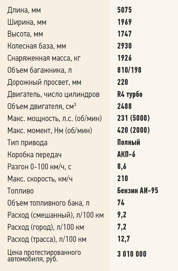 Все системы настроены помогать, не мешая. Аккуратными импульсами подруливает ассистент удержания в полосе, держась радарами за разметку. Траектория, проложенная электронным мозгом, идеально совпадает с выбранной водителем – отключить помощника рука ни разу не поднялась. Аналогичным образом – своевременно и предупредительно – тянут лямку системы экстренного торможения при движении вперед и назад, слежения за слепыми зонами и распознавания дорожных знаков. Последняя поможет здорово сэкономить на штрафах. Может ли большой семиместный автомобиль быть маневренным и лишенным тяжеловесности? Легко! В узких коридорах густо заставленных дворов кроссовер не чувствует себя пассажиром метро в час пик. Он устойчив и комфортен на ходу, для своих 231 л.с. динамичен и слушается руля аккурат в рамках представлений среднестатистического водителя. Если оголтело-хаотичным метаниям по рядам водитель предпочитает простую уверенность в совершении любого маневра – CX-9 ответит ему взаимностью. И не попросит многого взамен: средний расход топлива в городе во время теста составил 12,9 л. Среди очевидных плюсов также громадный багажник и просторный третий ряд сидений, на котором удобно будет не только детям.