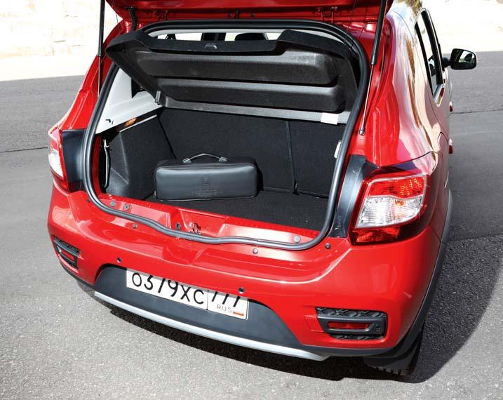 Интерьер Sandero Stepway каких-либо откровений не продемонстрирует, особенно человеку, сидевшему за рулем любого из «бюджетников» Renault. Все те же большие кнопки, недорогие, но качественные материалы отделки и кресла с высокой посадкой (водительское сиденье регулируется по высоте). Благодаря ей обеспечена хорошая обзорность, которую портят лишь широкие передние стойки. Эргономика на высоком уровне – назначение всех кнопок интуитивно понятно, и расположены они удобно, дотянуться не проблема. Смутить могут лишь клавиши управления задними стеклоподъемниками. Они расположены на центральной консоли, что не слишком логично, но это обусловлено унификацией – в базовой версии Stepway задние стеклоподъемники механические.