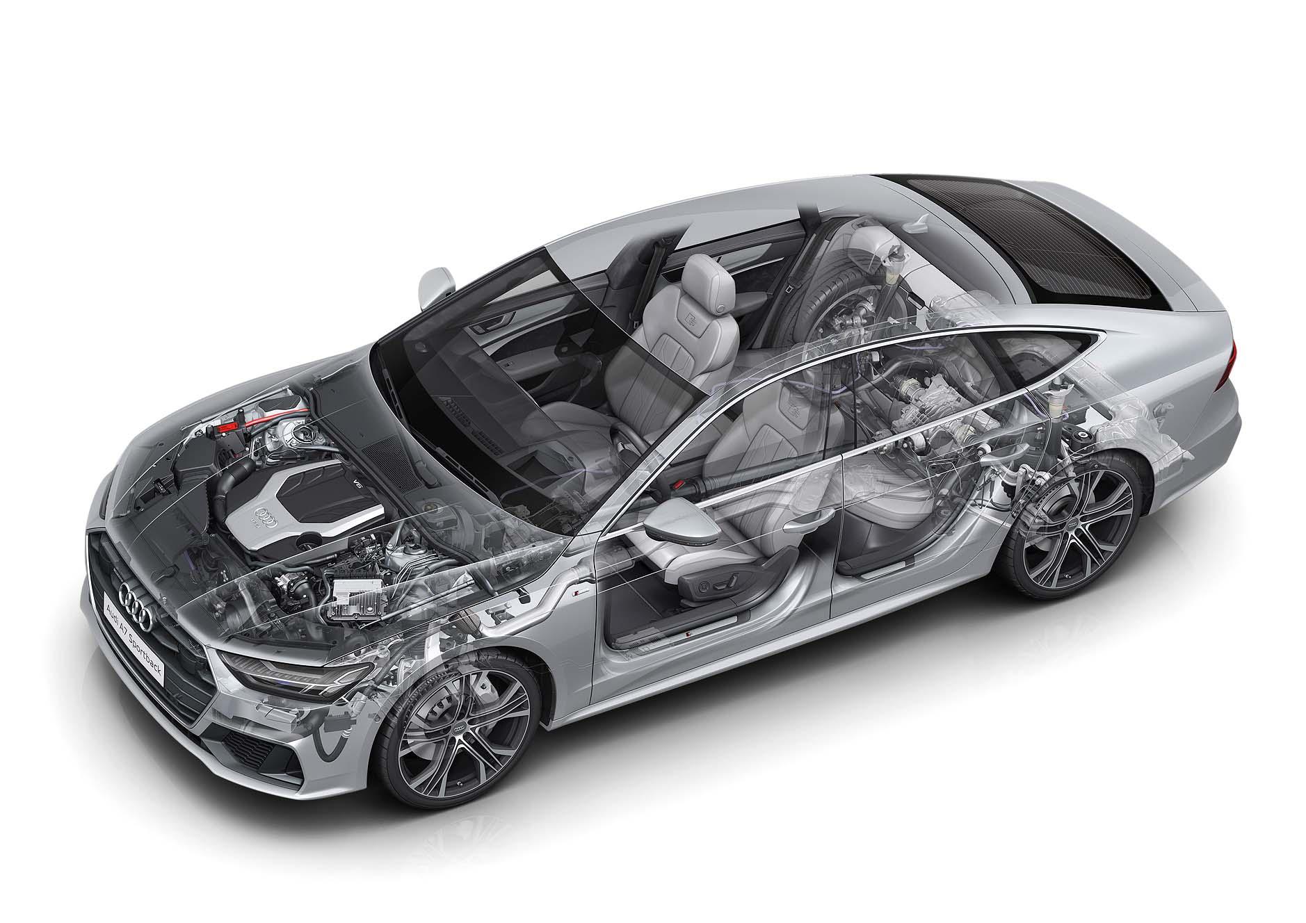 К старту продаж в Европе немцы приготовили две модификации Audi A7 Sportback – бензиновую с отдачей 340 л.с. и дизельную мощностью 286 л.с. В Россию вначале (заказы принимать начнут летом) привезут версию 55 TFSI. Лифтбэк 50 TDI появится у нас немного позже. Все версии получили технологию «умеренного гибрида» MHEV, в основе которой бортовая электросеть напряжением 48 В и стартер-генератор с ременным приводом. Производитель обещает, что нововведение позволит экономить 0,7 л топлива на 100 км пути и сделает купе более комфортным.