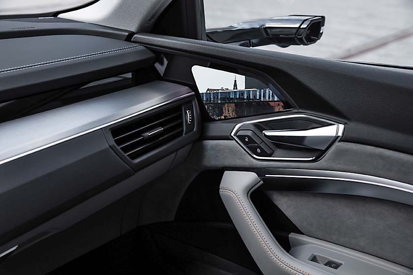 Электрокар Audi станет первым серийным автомобилем с виртуальными наружными зеркалами в истории. Изображения с боковых камер передается на 7-дюймовые высококонтрастные экраны, вмонтированные в двери. При этом водитель может увеличивать изображение или менять угол обзора. Предусмотрено и несколько режимов работы – для города, трассы и парковки. Цифровые зеркала заднего вида мы уже встречали, а вот боковые – это что-то новенькое, такого еще действительно не было! Будет у первого электромобиля Audi и крутая аудиосистема. За дополнительную плату можно будет заказать Bang & Olufsen 3D Premium Sound System. Обещают, что система будет воспроизводить звук точно так, как он был записан в студии, без каких-либо посторонних шумов и искажений. Что ж, послушаем!