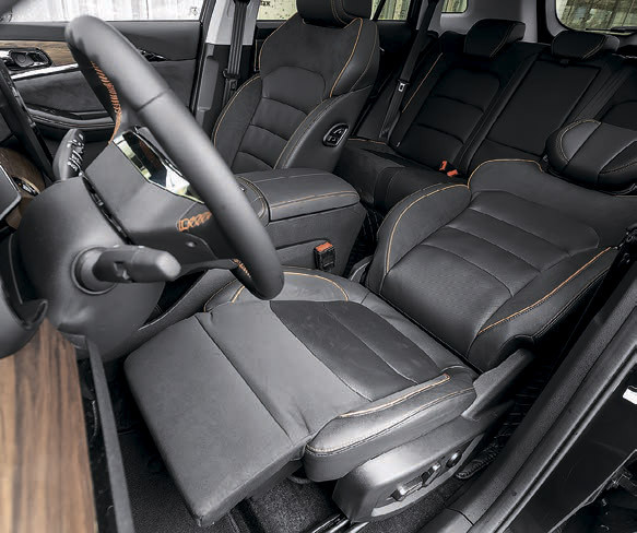 Китайцы организовали хороший салон, где вместительность не страдает от расположенной под полом батареи. Внутри пятиместный кроссовер нигде не тесный, достаточно места и для багажа. Передние кресла с подогревом и вентиляцией удобные, хотя по мягкости и по слабости боковой поддержки кажется, что взяты из мебельного гарнитура, будто концерн бытовой техники ориентировался на вальяжную посадку у телевизора. Обстановка современная и без надуманного футуризма. Комплектация богатая. А вскоре дистрибьютор запросит у Китая и расширенный до максимума зимний пакет. Электромотор и трансмиссия тут от авторитетной компании BYD, чему можно лишь порадоваться: она свое дело знает. Привод безальтернативно передний. На ровных и сухих сочинских дорогах Skywell набирает ход с таким завидным энтузиазмом, словно весит на добрую треть меньше заявленного. Подкупающая легкость. Плюс, конечно, характерная чудесная почти беззвучность в движении. Понравился и режим рекуперации, ее интенсивность настраивается по шкале бесступенчато.