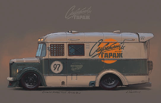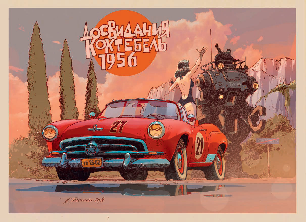 С начала художник сотворил свою ретрофутуристическую техноутопию, населенную удивительными машинами, чудесными роботами и порой странными персонажами, увидел, что это хорошо, и выложил в сеть. А там она обросла новыми смыслами, народными текстами и «газетными вырезками». Так образовался идеальный «параллельный СССР», где не только эффективно работает автомобильная промышленность, производящая крутые машины и разного рода механизмы, но еще советские труженики собирают для Бэтмена, борца за счастье всех угнетенных и униженных на территории Северных Американских Штатов, гоночный автомобиль, добрые роботы развозят гражданам газировку, а испытатель Иван Моторов ставит рекорды скорости на автомобилях с двигателями неземного происхождения. Как так вышло и что из этого еще может получиться, корреспонденту «Автопилота» рассказал сам Андрей Ткаченко.