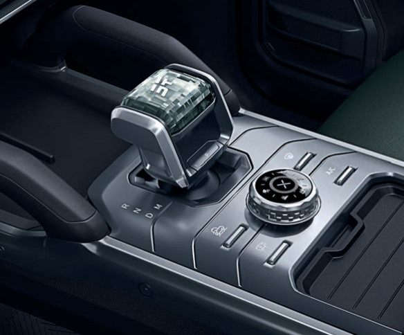 Внутри автомобиля наблюдаем тот же брутализм, но все сделано деликатно, без гротеска, который мы иногда наблюдаем в китайских автомобилях. Огромные ручки, за которые на пересеченной местности будут держаться те, у кого в руках не будет руля, декоративные элементы закреплены огромными саморезами. К слову, сам руль тут приплюснутый, как авиационный штурвал, а селектор коробки явно стилизован под рычаг тяги в самолете. Не будем забывать, что у нас не просто турпоездка – везет нас «турбо-джет».