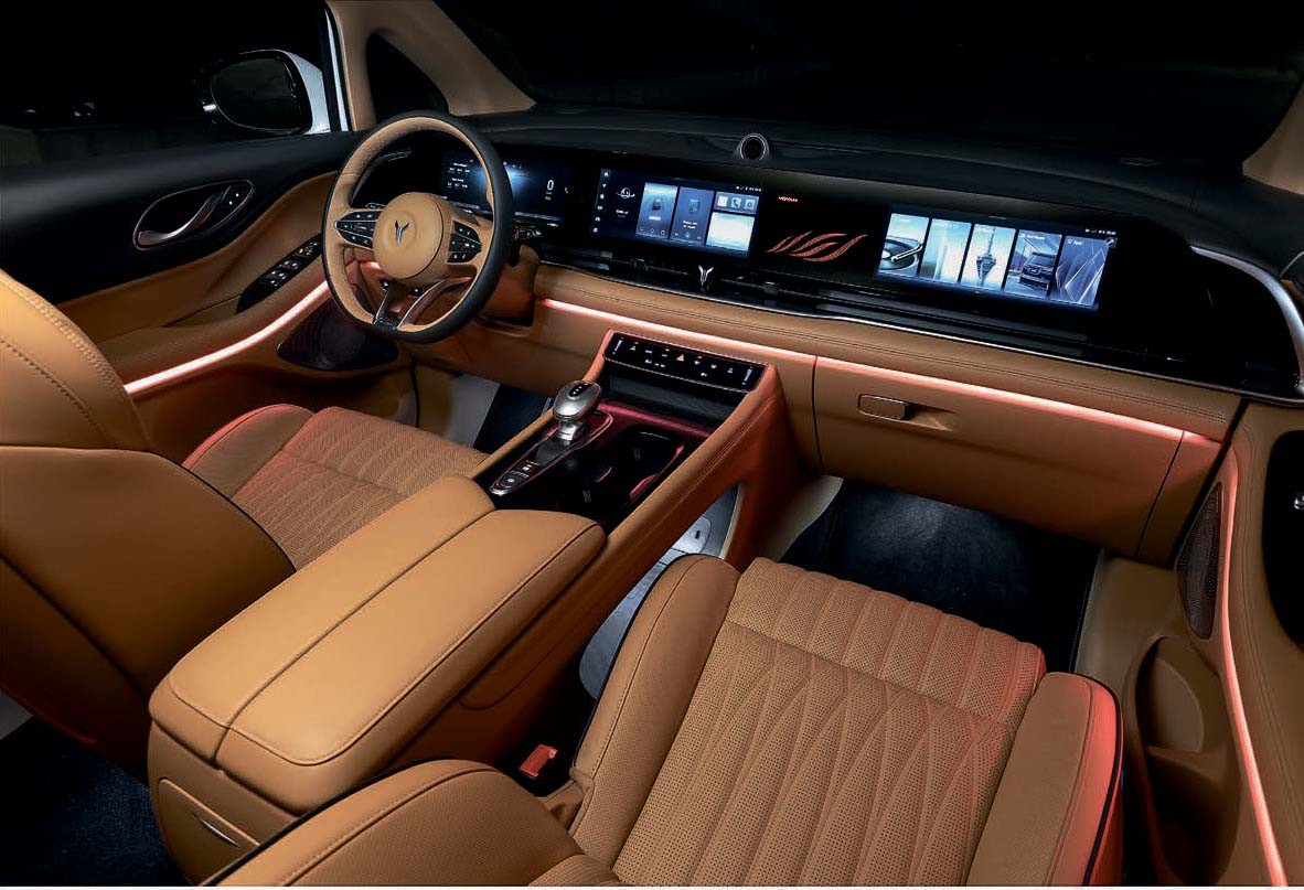 Именно таков внушительный пятиметровый максивэн Voyah Dream, явно посланный сюда прививать нам специфические китайские ценности. Сейчас представлен в России семиместным, а позже появится версия с одним «лимузинным» задним рядом и обращенным назад широким экраном. Хотя и семиместное исполнение уже чрезвычайно богатое. Успешный бизнесвэн. И название опять-таки мотивирующее – «Мечта».