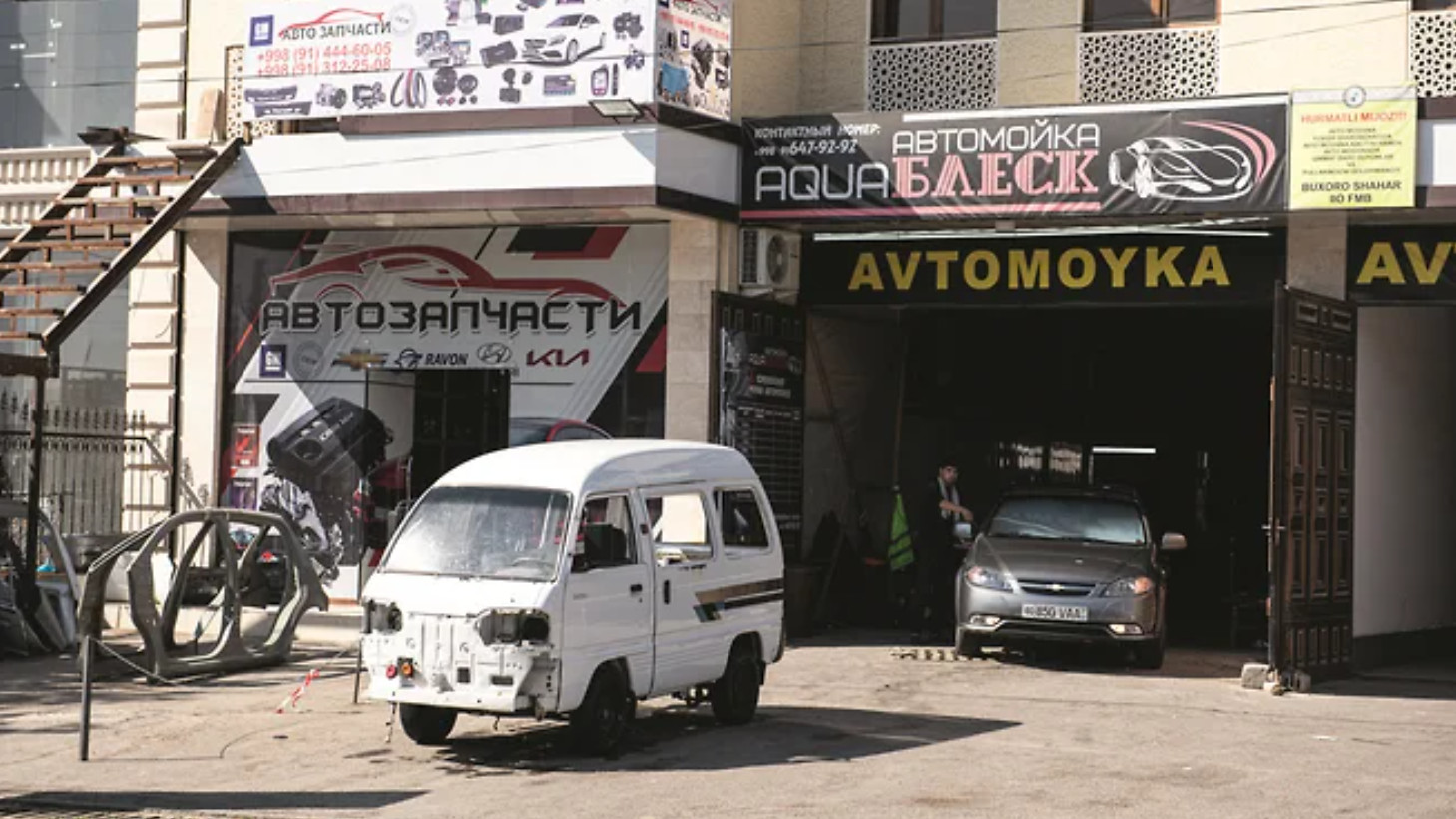 Основной цвет автомобилей – белый. «Ты уже видел пять белых „Кобальтов“ подряд?» – спросил меня знакомый, ранее бывавший в Узбекистане. Сейчас я могу сказать: видел и больше. «Кобальты» и «Лачетти», по моим наблюдениям, составляют основу парка в Бухаре. Еще много мелких, что не мешает служить им в такси, «Спарков» и «Матизов». Ниша легкого коммерческого транспорта почти полностью оккупирована двумя родственными моделями: грузовичком с открытой платформой Labo и микроавтобусом Damas.